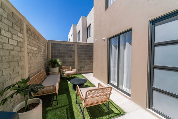 Finalmente, pero no por ello menos importante. VITA tiene un jardín posterior, con acceso por el pasillo lateral, que invita a llegar con chelas, varios cortes y armar la carnita azada...
